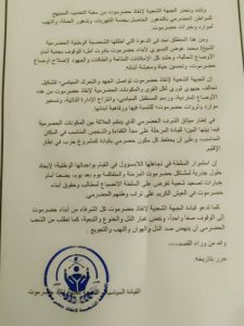 The statement confirmed that the Popular Front to Save Hadramout is following the tragic events taking place in Hadramout and the rest of the southern regions, as the people are suffering because of the corrupt authorities “who share the spoils and gains of Chapter Seven,” as it described.