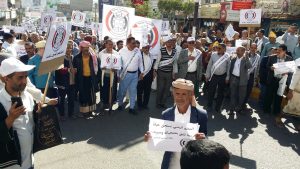 TAIZ, Feb. 09 (YPA) – A large demonstration took place on Sunday in Taiz province, organized by the Yemeni Teachers Syndicate and the Educators Union in the Saudi-led coalition-controlled areas, calling for salary increases, wage restructuring, and meeting the demands of striking teachers.