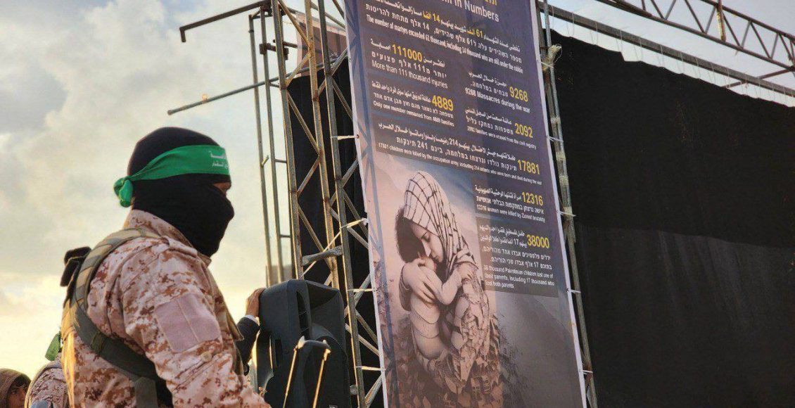 During the handover, the coffins of the four captives were placed on a platform with the writing “War Criminal Netanyahu and His Army Killed Them With Missiles and Zionist Warplanes” with the pictures of the four captives and Netanyahu in the background, where a handover agreement was signed between a Hamas representative and the Red Cross.