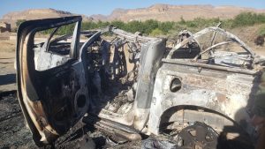 SAADA, April 03 (YPA) – Yemen Press Agency (YPA) has obtained special pictures of the targeted civilian vehicle in Saada province, northern Yemen. Details of casualties are yet to be confirmed.