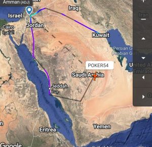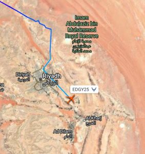 The aircraft took zigzag routes to attempt to apply stealth after passing south of Riyadh and were confirmed to have landed at the base.