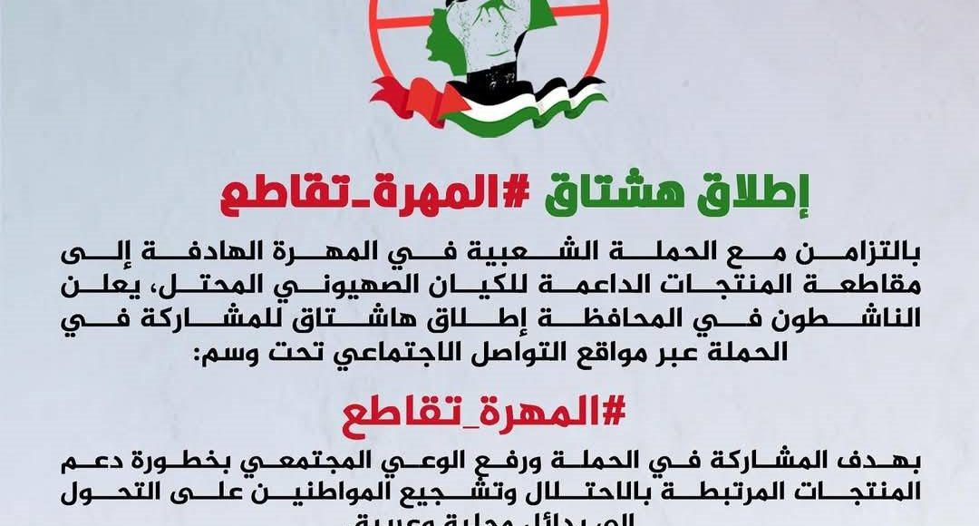 Activists and entrepreneurs from Mahra noted that the economic boycott represents an effective tool to pressure the Israeli occupying entity, emphasizing the importance of working together to support the alternatives from local and Islamic products.