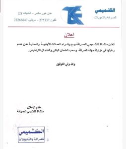 Al-Kashimi Exchange and Remittances, headquartered in the Khormaksar area of Aden, affirmed in a statement its reluctance to engage in the exchange business.