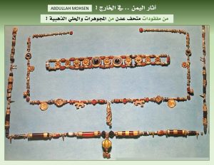 SANAA, Sept. 04 (YPA) – Abdullah Mohsen, a Yemeni researcher specializing in monitoring and tracking smuggled antiquities from Yemen, revealed the disappearance of 14 gold artifacts, including necklaces and bracelets, from the Aden Museum, which is under the Saudi-led coalition’s control in southern Yemen.