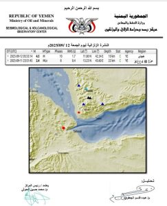 Al-Houthi added that monitoring stations also recorded an earthquake measuring 4.5 on the Richter scale in Djibouti at 8:55 a.m.