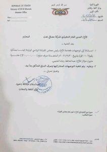 The document stipulated that the amount be delivered to Alimi’s son “hand to hand.” It also showed that the minister’s order to the Aden Refineries Company was based on a memo from Rashad al-Alimi himself, numbered ‘102’ and dated September 30 of the same year.