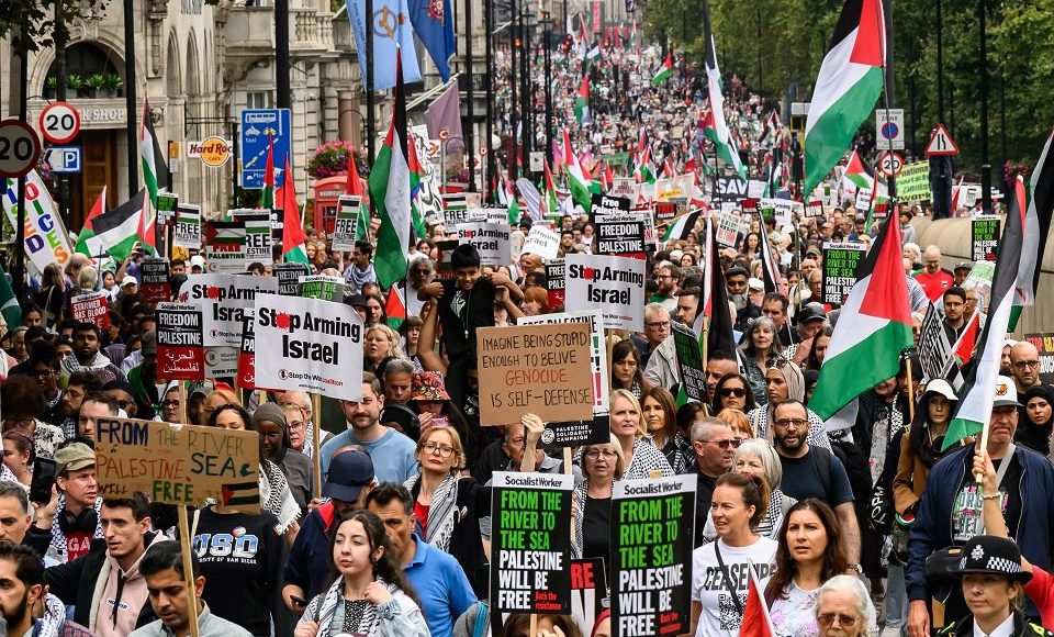 BERLIN, Sept. 14 (YPA) – Thousands of people rallied in central Berlin on Saturday to protest the ongoing Israeli genocide in Gaza, demanding an immediate end to the military offensive and German arms deliveries to “Israel.”