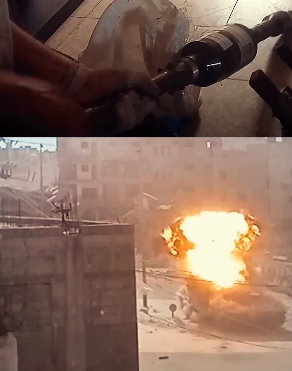 *Al-Qassam Brigades publishes: As part of a series of “Moses Stick” operations…the destruction of a Zionist “Merkvah” tank with an Al-Yassin 105 shell in the Tal Al-Hawa area, south of Gaza City pic.twitter.com/mzxgverzO5
