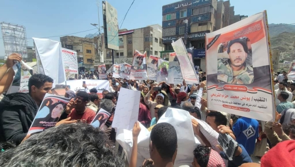 TAIZ, Oct. 03 (YPA) -Families of victims killed amid the ongoing security disorder in Taiz controlled by factions of the Saudi-led coalition, held a protest on Friday, near sit-in camps outside the local authority headquarters, demanding the arrest of individuals accused of involvement in the killings.
