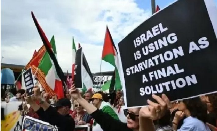 SANAA, Oct. 05 (YPA) – The Italian island of Lido, which is hosting the 82nd Venice International Film Festival, witnessed a march in support of Palestine, attended by celebrities from the world of cinema. Thousands of people gathered in Santa Elisabetta Square, on Lido Island near Venice, to highlight the genocide being committed by the occupation in Gaza.