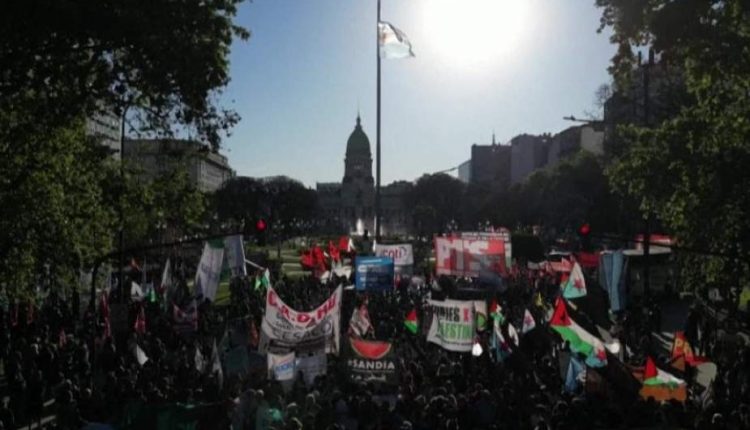 In the rally, the participants carried Palestinian and Argentine flags, chanting slogans demanding an end to Israeli military operations and the lifting of the blockade on Gaza.
