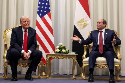 From Sharm El-Sheikh in Egypt, Trump expressed his desire for Egyptian President Abdel Fattah El-Sisi to join the “peace council to manage Gaza.”