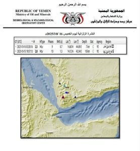 DHAMAR, Oct. 18 (YPA) – Seismic monitoring stations recorded two earthquakes in Dhamar and Hodeida governorates during the early hours of Friday.