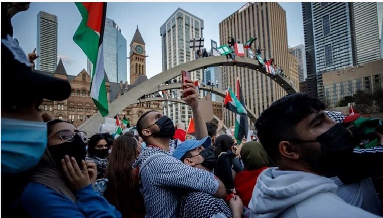 CANADA, Oct. 22 (YPA) – Pro-Palestinian activists held on Tuesday a demonstration in Ontario, Canada, calling on the Canadian government to halt arms sales to “Israel” and other countries.