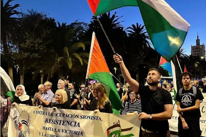 MADRID, Oct. 25 (YPA) – The Spanish city of Malaga witnessed a large solidarity demonstration with the Palestinian people, where hundreds participated in the city center demanding an immediate halt to the Israeli occupation forces’ attacks on the Gaza Strip and calling for the prevention of the “genocide” facing the population.