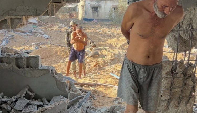 GAZA, Oct. 28 (YPA) – Hebrew media published on Tuesday, for the first time, an image reportedly showing elderly Palestinian civilians in Gaza being used as human shields.