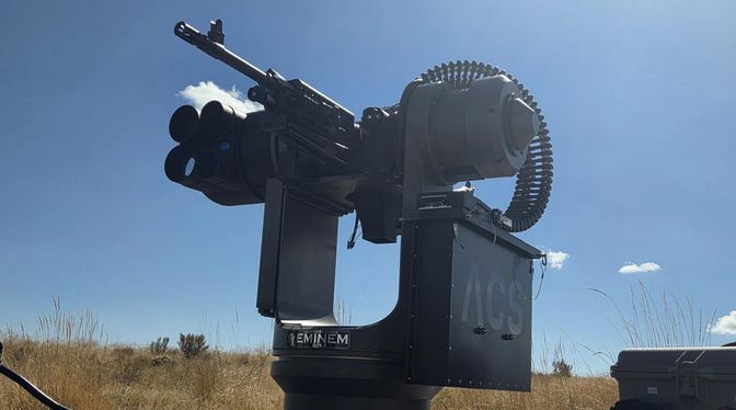 These turrets, called Eminem, have been showcased. They are mounted on unmanned ground vehicles to form a mobile line of defense that can be rapidly deployed to protect the most vulnerable sites, including oil installations and sensitive economic areas.