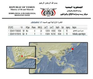 DHAMAR, Jan. 17 (YPA) – The National Seismological Observatory Center in Dhamar announced recording a minor earthquake in the Juban District of Dhalea Governorate early Saturday morning.