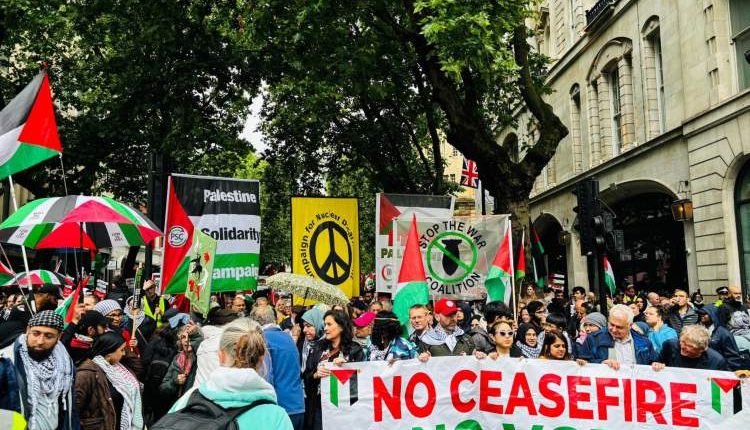 Tens of thousands rally in London condemning Israeli violations in Gaza