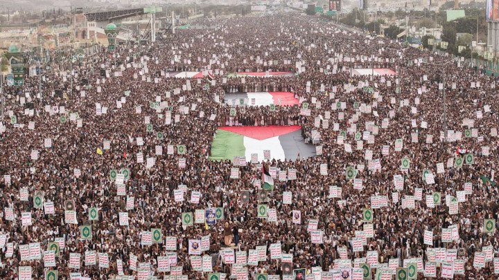 SANAA, Feb. 06 (YPA) – Massive popular demonstrations took place on Friday in the Yemeni capital, Sanaa, and several other provinces in support of the Palestinian people.