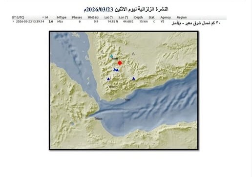 It is worth noting that the Earthquake and Volcano Monitoring and Study Center in Dhamar monitors the seismic situation around the clock through its network of stations spread across various Yemeni governorates.