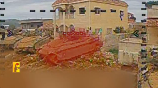 Video footage showing Hezbollah targeting Israeli armored personnel carrier with drone strike