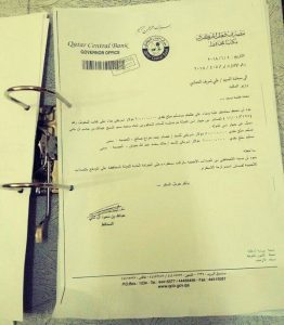 The other document, issued by the Governor of the Central Bank of Qatar, dated (January 9, 2018), addressed the Qatari Minister of Finance, to the delivery of a sum of US $60 million based on a transfer letter from the State Security service.