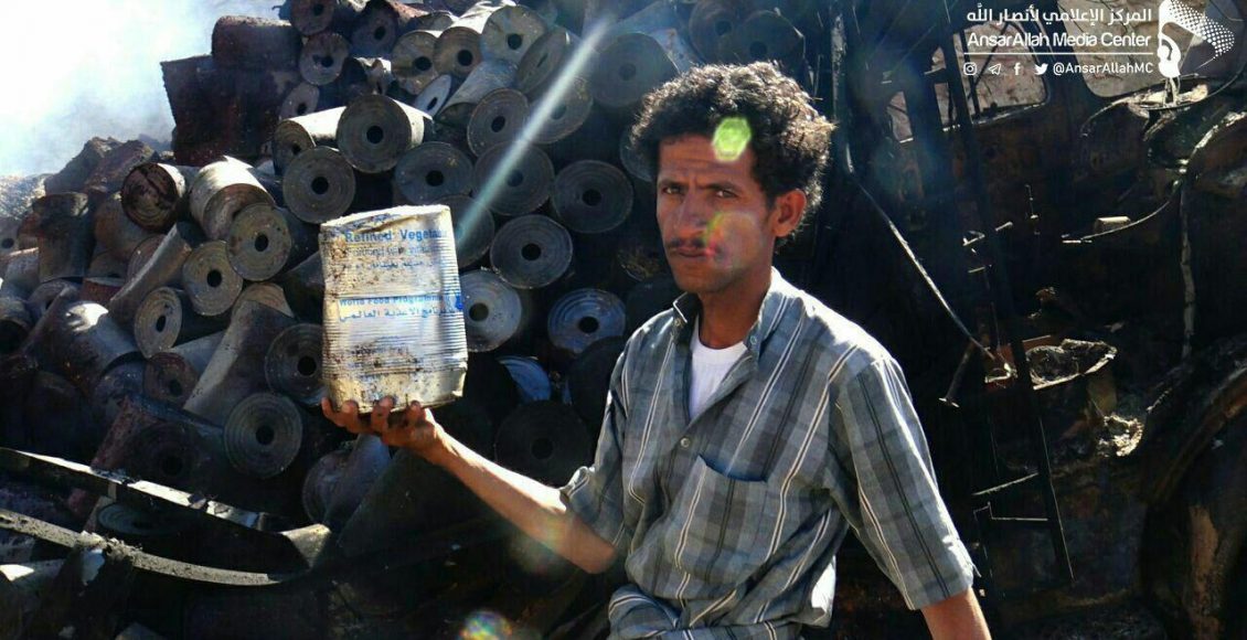 Photos released by Ansrullah Media Center showed the wreckage of the vehicles and aid food destroyed.