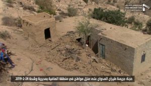 The photos show the destruction of citizens’ homes in Washaha district, after being hit by two Saudi-led air strikes, killing two civilians.