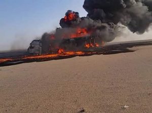 MARIB, June 25 (YPA) – An oil tanker was attacked by unidentified gunmen on Tuesday, causing it completely burnt on the road in Marib province, east of Yemen.
