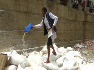 RAYMA, July 21 (YPA) – The local and judicial authorities in Rayma province, in central Yemen, on Sunday destroyed 16 tons of foodstuffs of the United Nations World Food Program (WFP) for being unfit for human use.